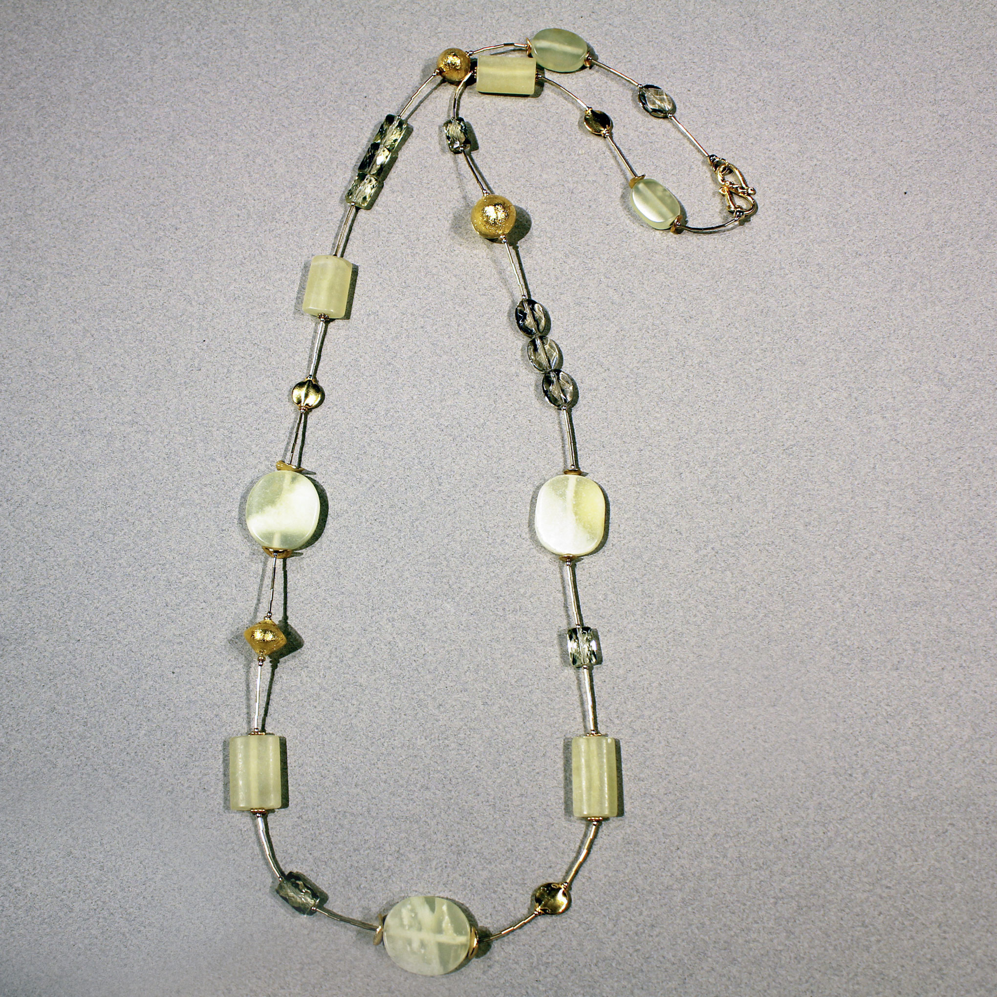 Sautoir de jade | Jade ancien de Chine, citrine, verre de Murano, espaceurs argent et vermeil, fermoir en vermeil